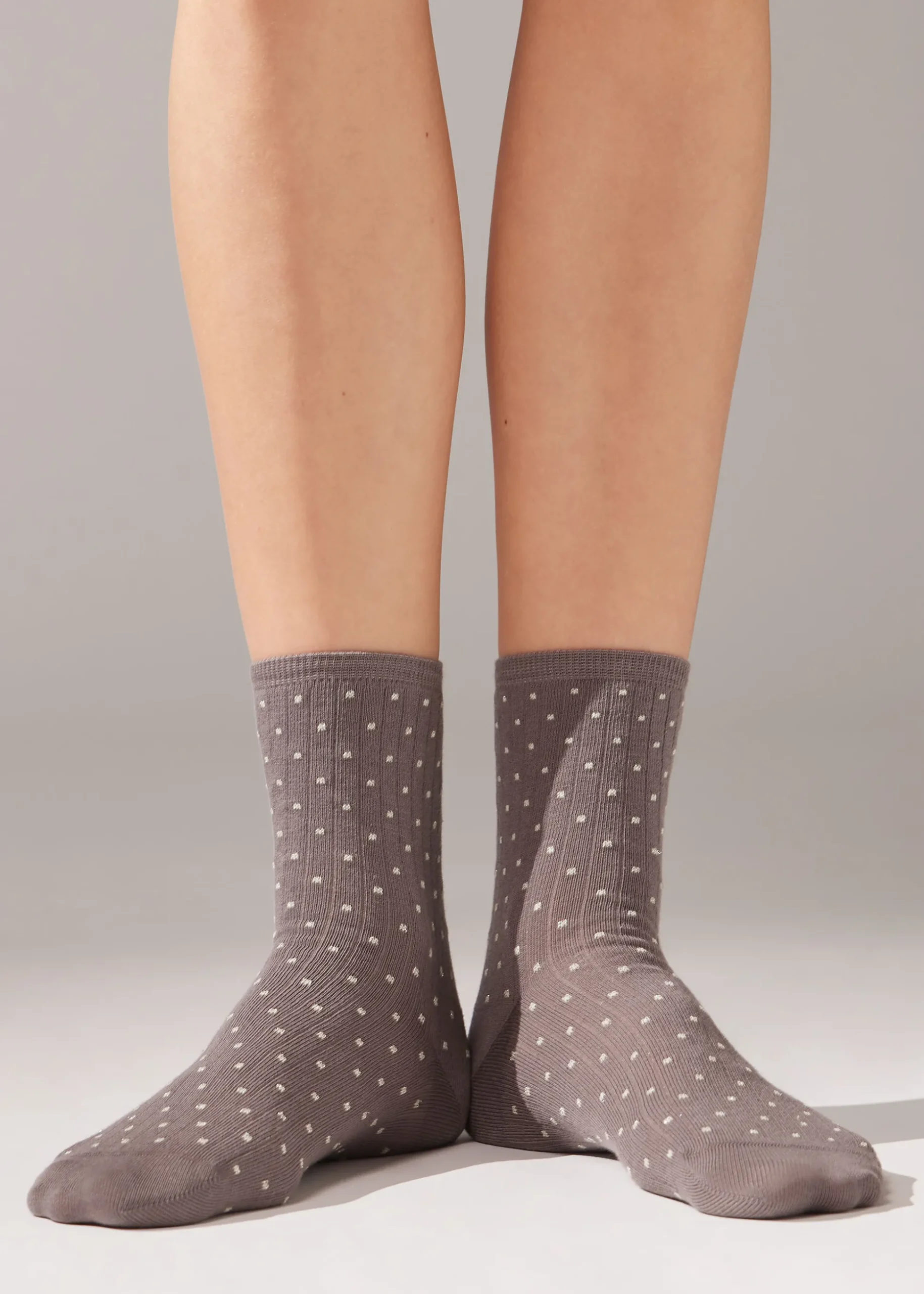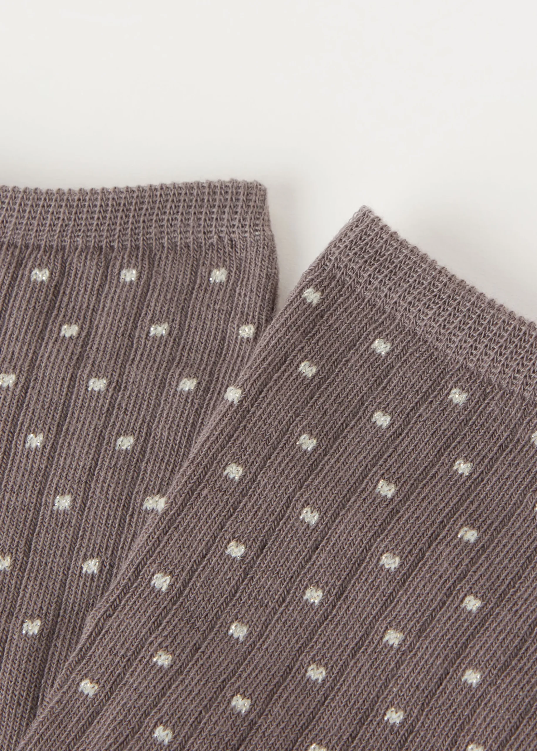 Calze corte da donna caratterizzate da una fantasia a pois e un brillante filato glitter.