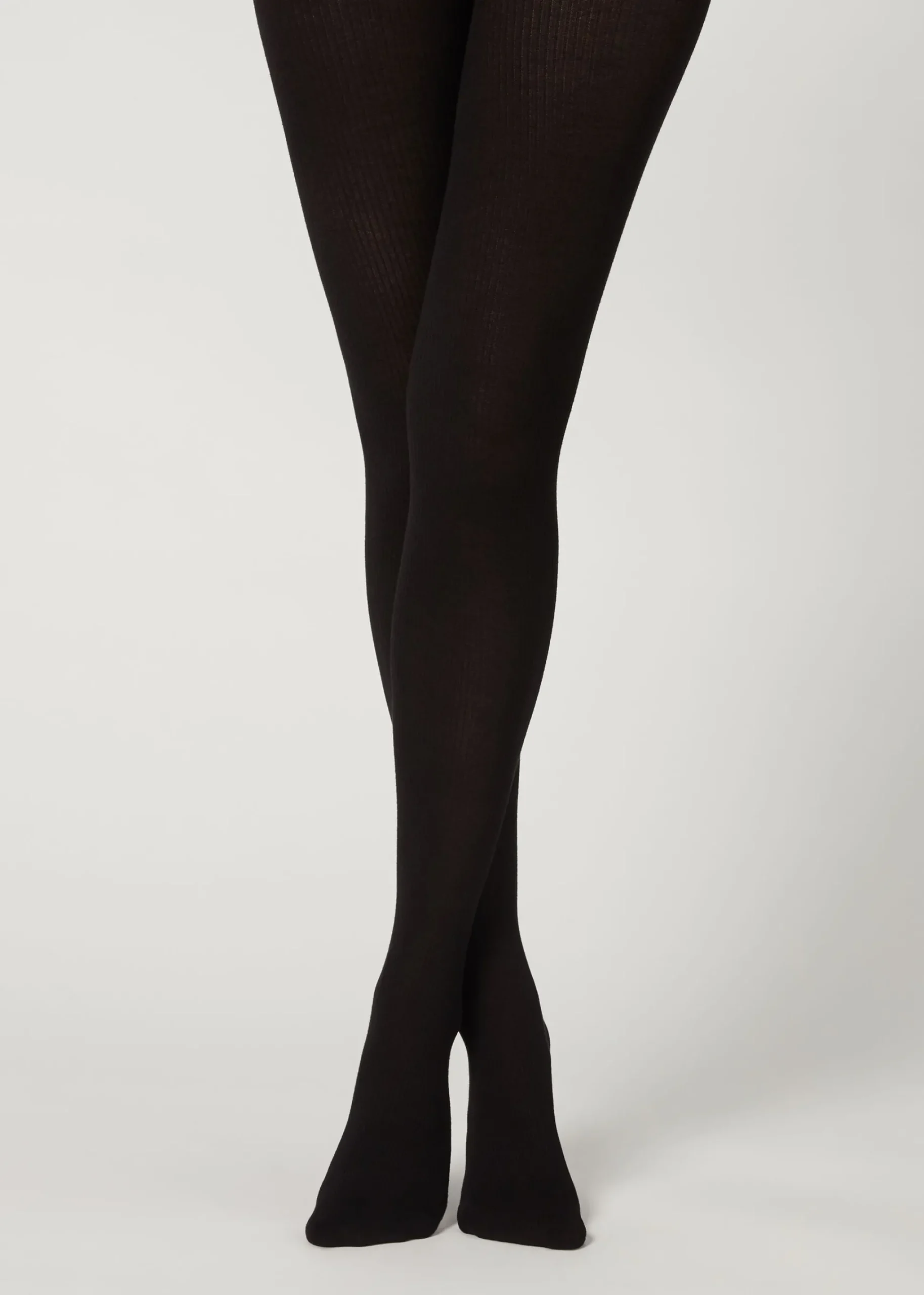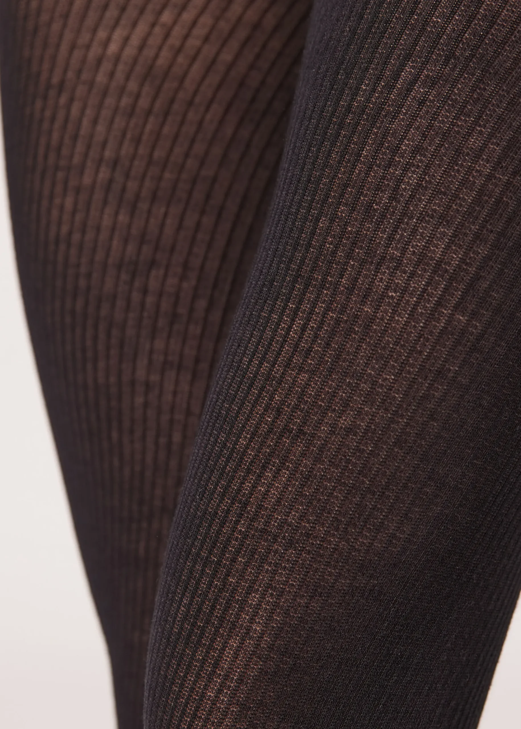 Collant con Cashmere da donna lavorati a coste, caldi e confortevoli. Tassello in cotone.