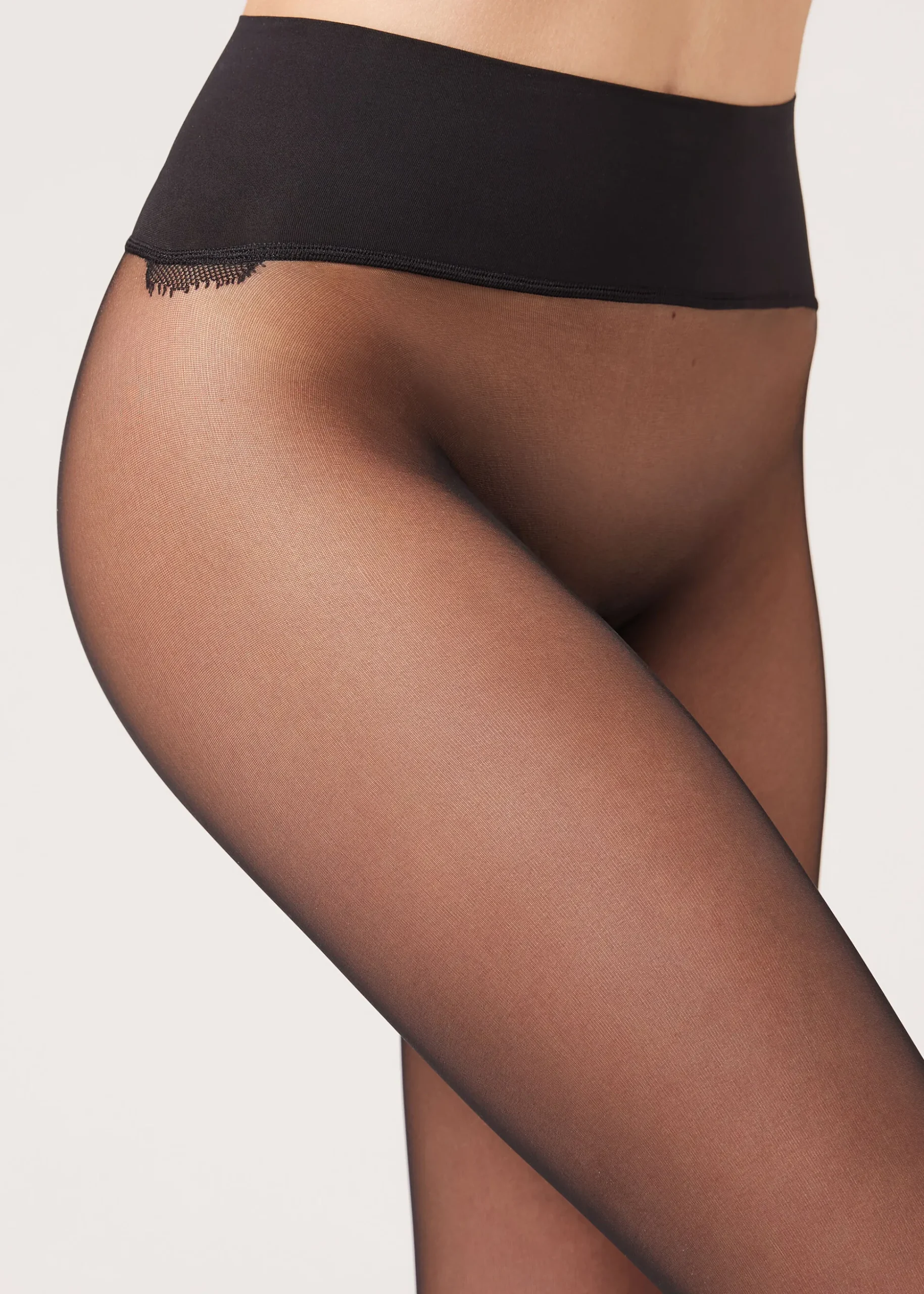 Collant senza cuciture, velati 20 denari opachi, totalmente invisibili anche sotto gli abiti più attillati, estremamente confortevoli.