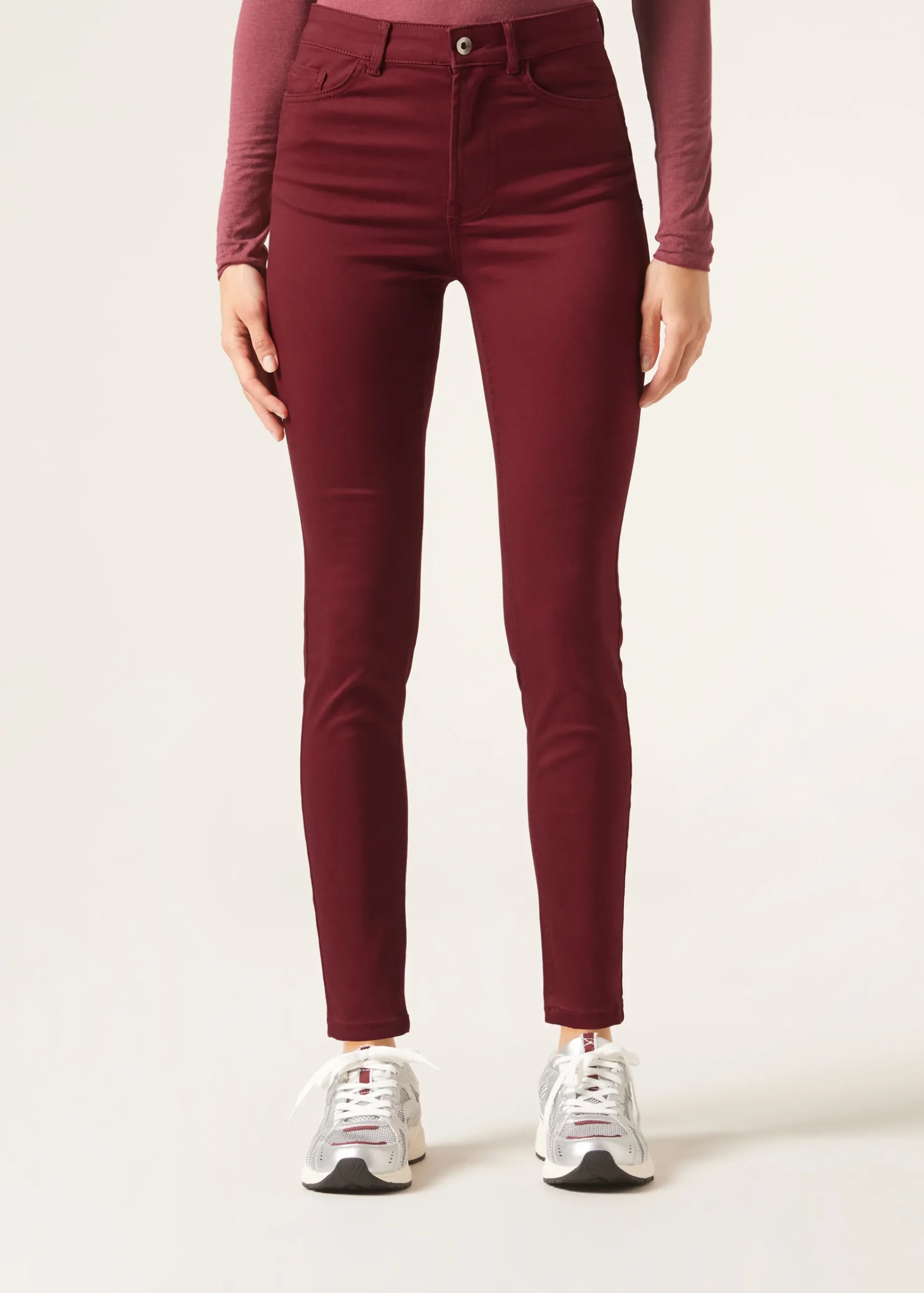 Jeans push up skinny a vita alta con zip e bottone. Tasche vere anteriori con dettaglio coin pocket e pratiche tasche posteriori. Il tessuto denim particolarmente morbido garantisce un’ottima vestibilità.