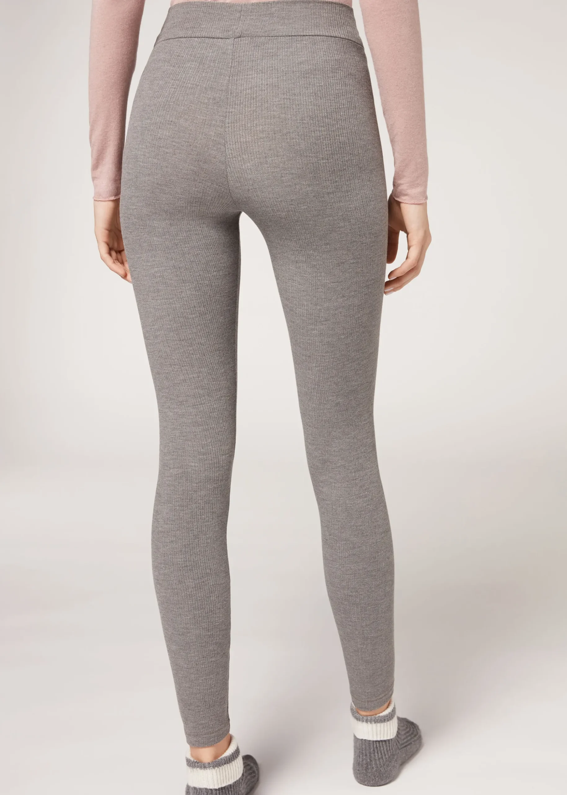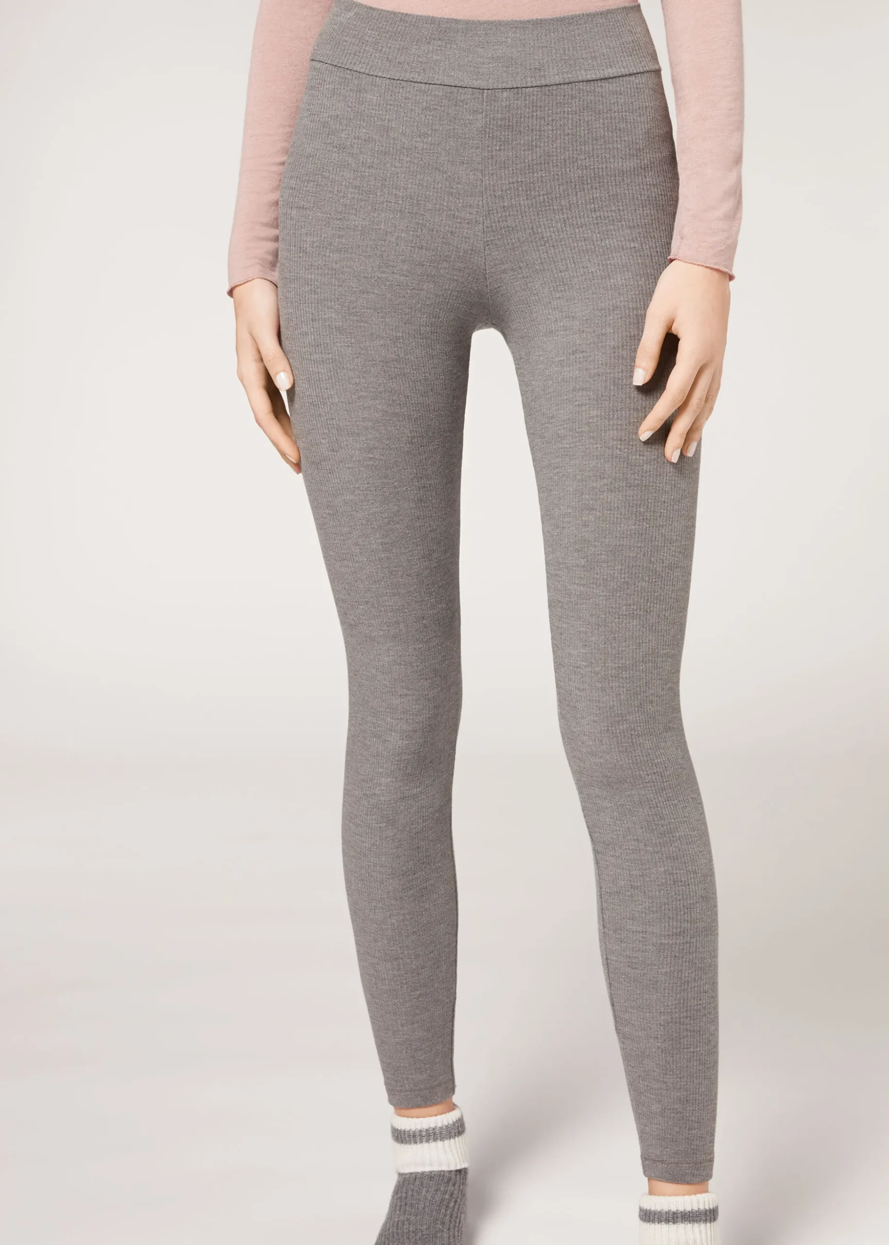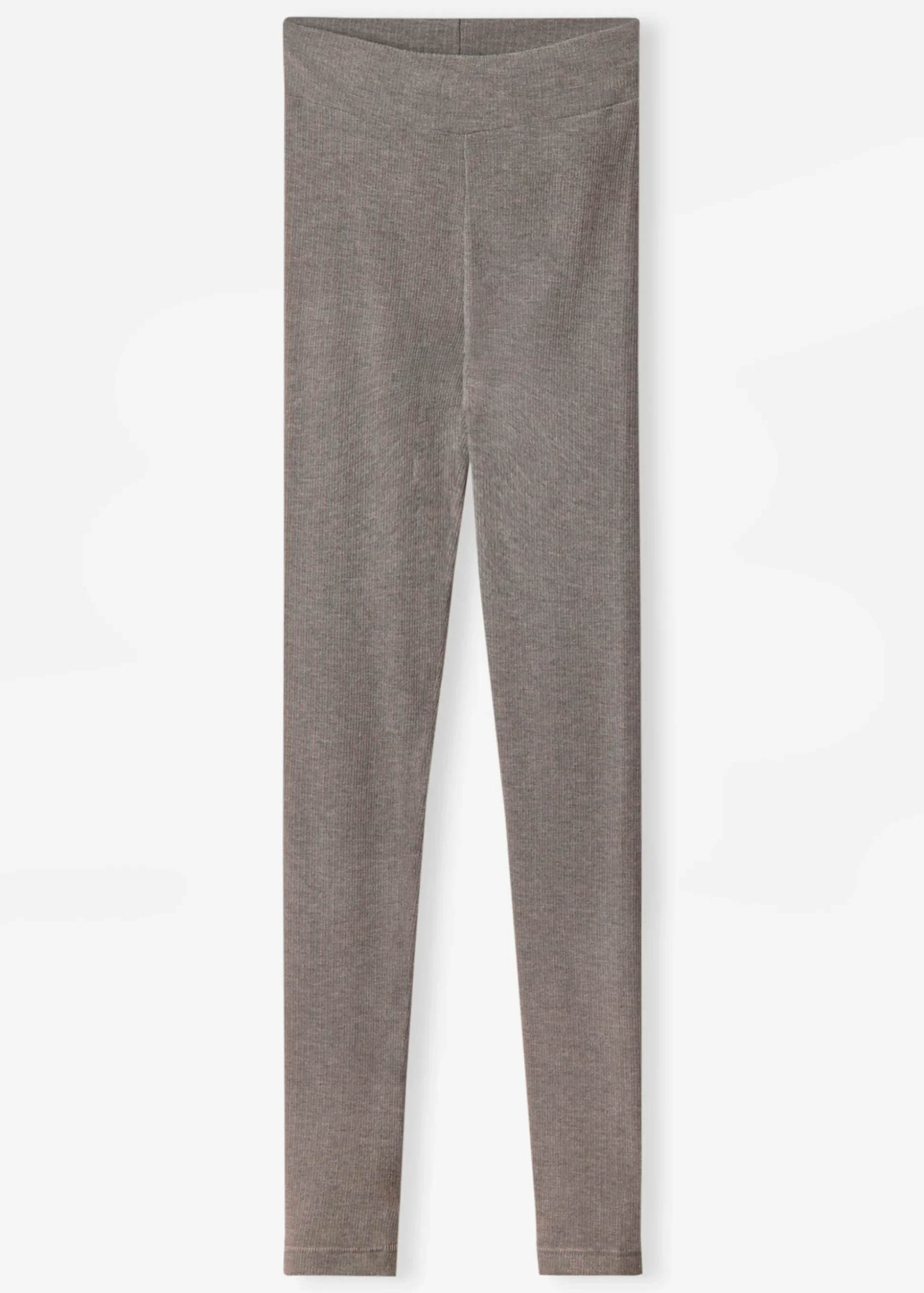 Leggings a coste in modal con cashmere con cinturino alto confortevole e senza elastico. Tessuto morbido e traspirante, ma allo stesso tempo caldo e confortevole.
